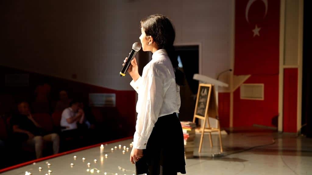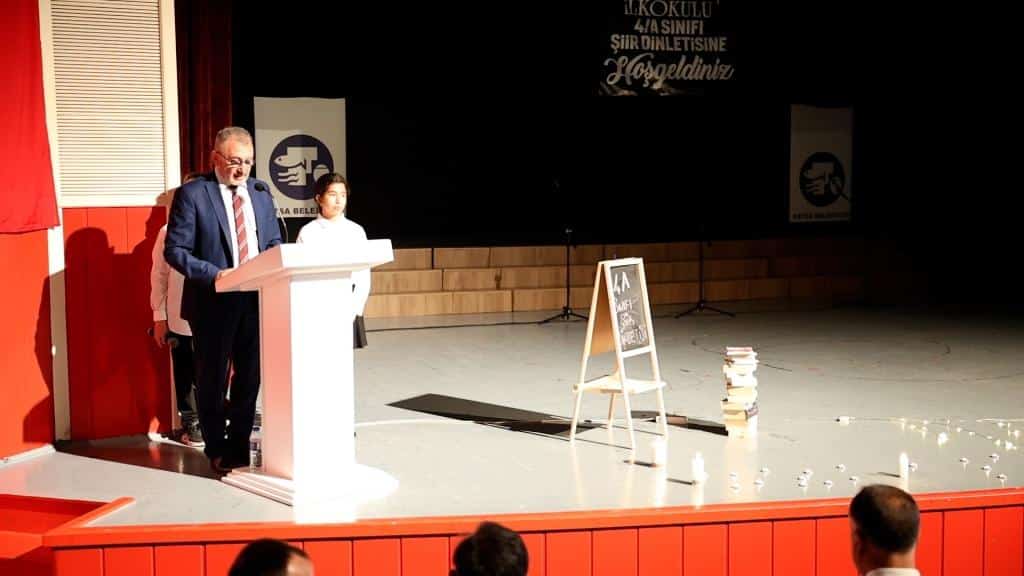 Öğretmenimiz Muhammet ÖZYÜREK önderliğinde 4/A sınıfı öğrencilerimizin hazırladığı “ HER MISRA BİR HATIRA” Şiir dinletisi programımı icra ettik. Öğrencilerimizin büyük duygularla okuduğu şiirleri dinlerken hem duygulandık hem gururlandık hem de şiire doyduk. Bu programın hazırlanmasında emeği geçen Muhammet Bey başta olmak üzere tüm öğretmen arkadaşlarımıza, öğrencilerimize, velilerimize ve Okul Aile Birliği Başkanımıza çok teşekkür ederiz. Ayrıca salonu bize tahsis eden Fatsa Belediye Başkanımız Sayın İbrahim Etem KİBAR Beye, Kültür Sarayı Müdürü ve personeline de teşekkür ederiz.